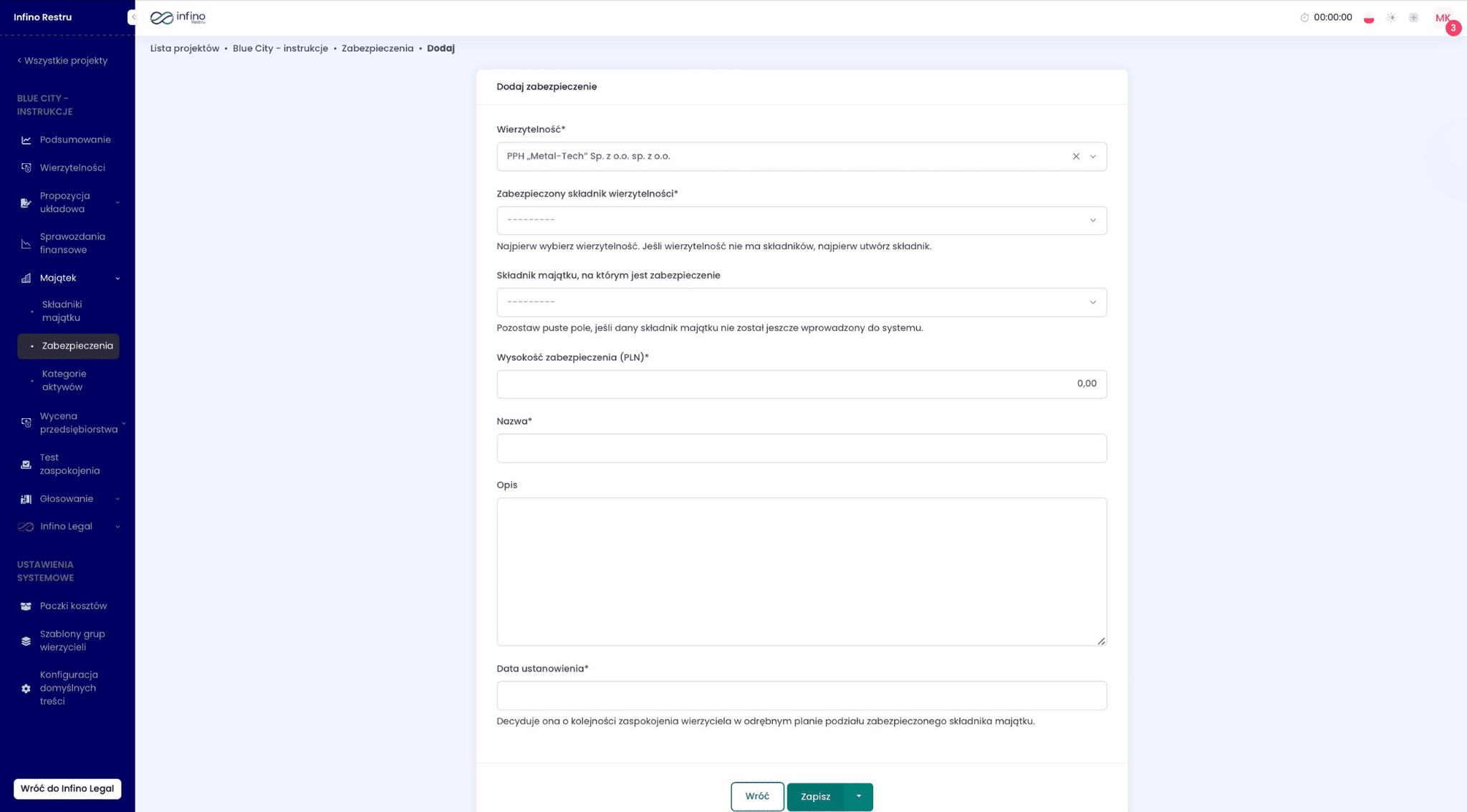 W Infino Restru możesz przypisać zabezpieczenia do wierzytelności na dwa sposoby – w zależności od tego, czy masz już wprowadzony majątek dłużnika: