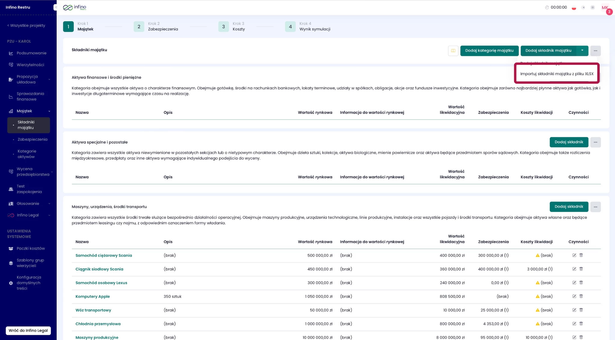 Dodanie składników majątku to pierwszy krok do rzetelnej analizy finansowej w postępowaniu upadłościowym. Każdy składnik wpływa na wyniki testów zaspokojenia oraz poziom spłaty zobowiązań. Dzięki precyzyjnemu odwzorowaniu aktywów i kosztów ich likwidacji, system umożliwia wierne odwzorowanie realnej sytuacji majątkowej i zapewnia podstawę do skutecznej symulacji upadłości.