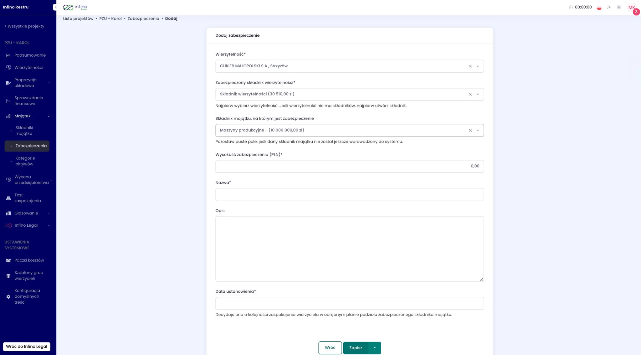 3. Określ zabezpieczenia (jeśli występują). Jeśli dany składnik jest obciążony zabezpieczeniem (np. hipoteką, zastawem), możesz od razu dodać powiązanie z wierzycielem.