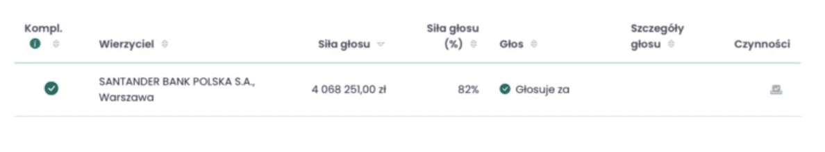 • Pokazuje, ilu wierzycieli już oddało głos oraz ilu jeszcze nie przesłało swojego stanowiska.