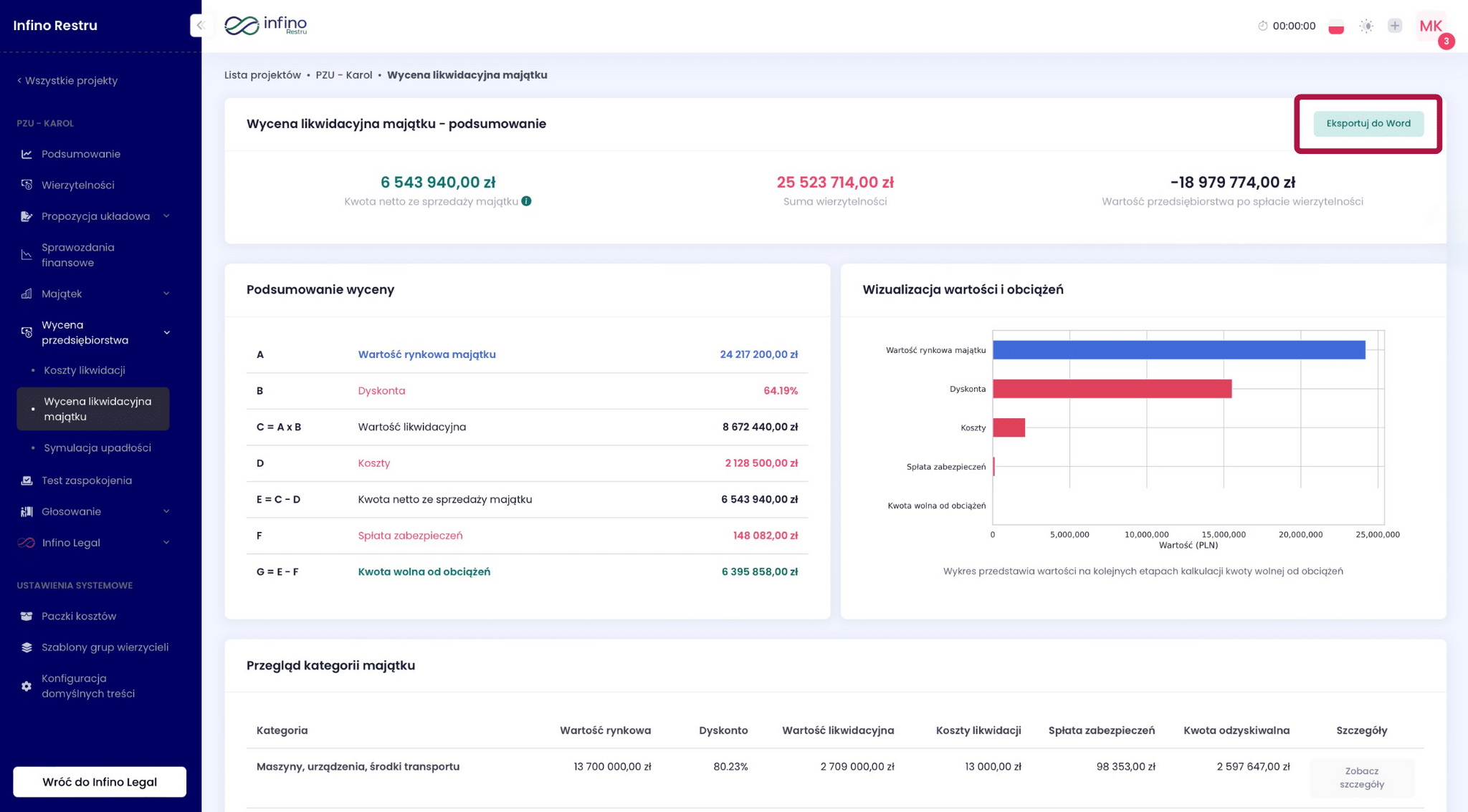 System Infino Restru automatycznie przygotuje za Ciebie wycenę likwidacyjną majątku.
